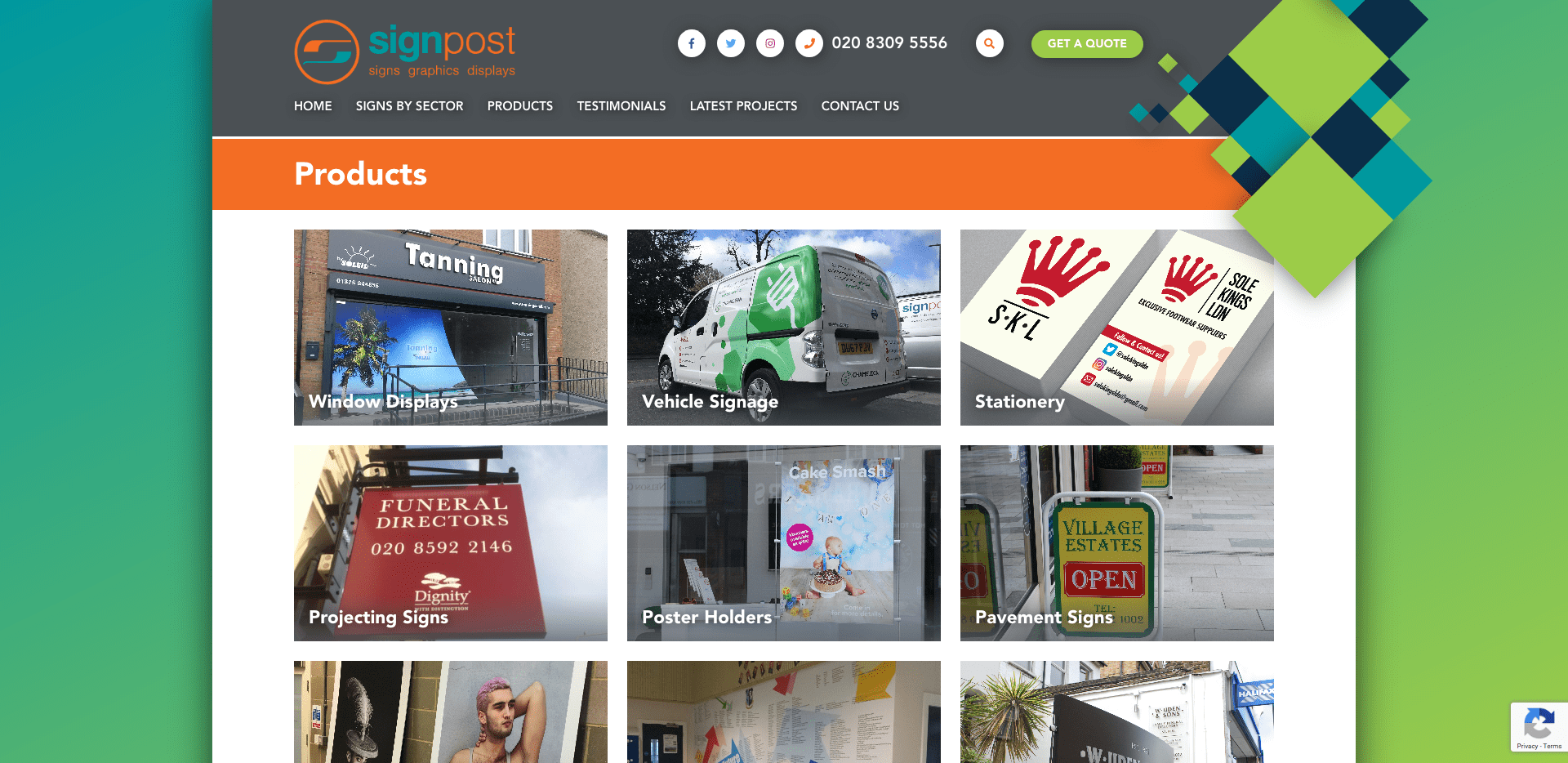 The team at SignPost Signs wanted a new, modern website that would welcome potential customers, showcase their services, provide examples of their work, and the range of products available. They also wanted control over the site content, and to increase the number of online enquiries being received.